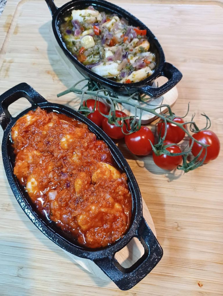GARNALEN IN EEN TOMATEN KNOFLOOK BADJE, PITTIG GEKRUID